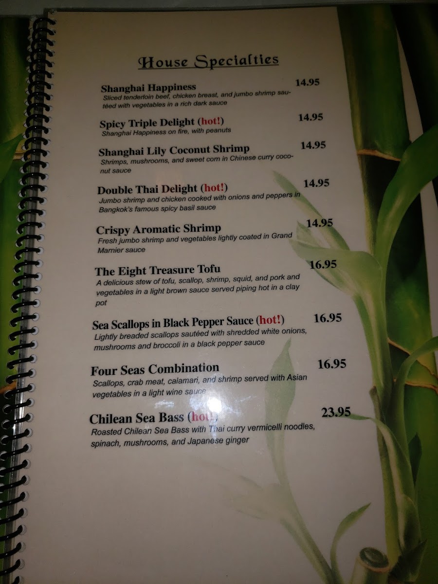 Each dish on the menu showcases the restaurant's commitment to flavor and quality, offering a mix of traditional favorites and unique creations that appeal to a wide range of palates. Whether you're starting with an appetizer or indulging in a hearty chicken dish, Shanghai Lily provides a memorable dining experience with a menu full of delicious choices.